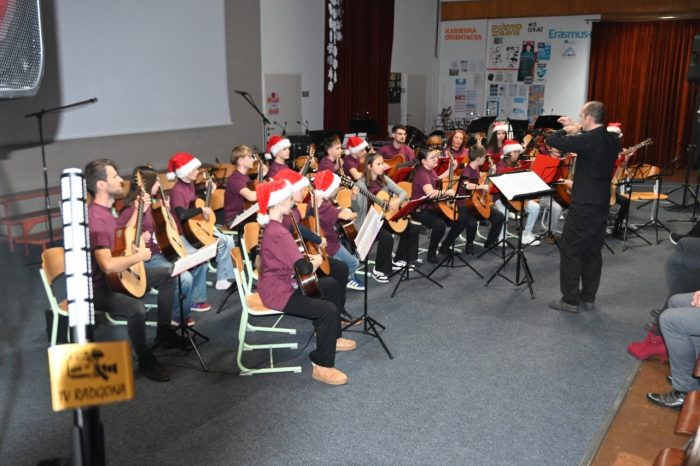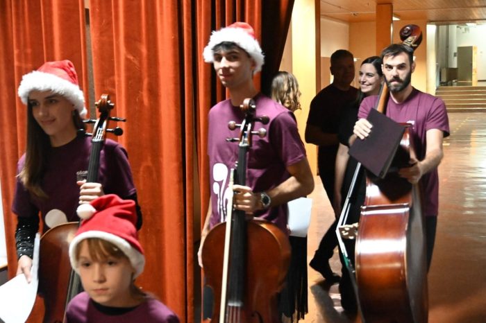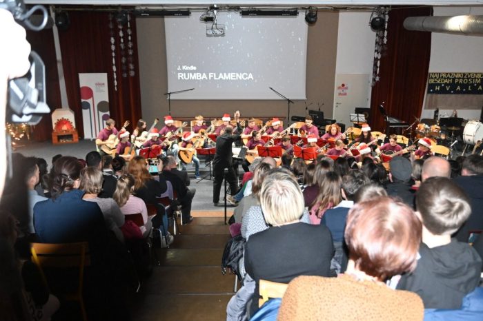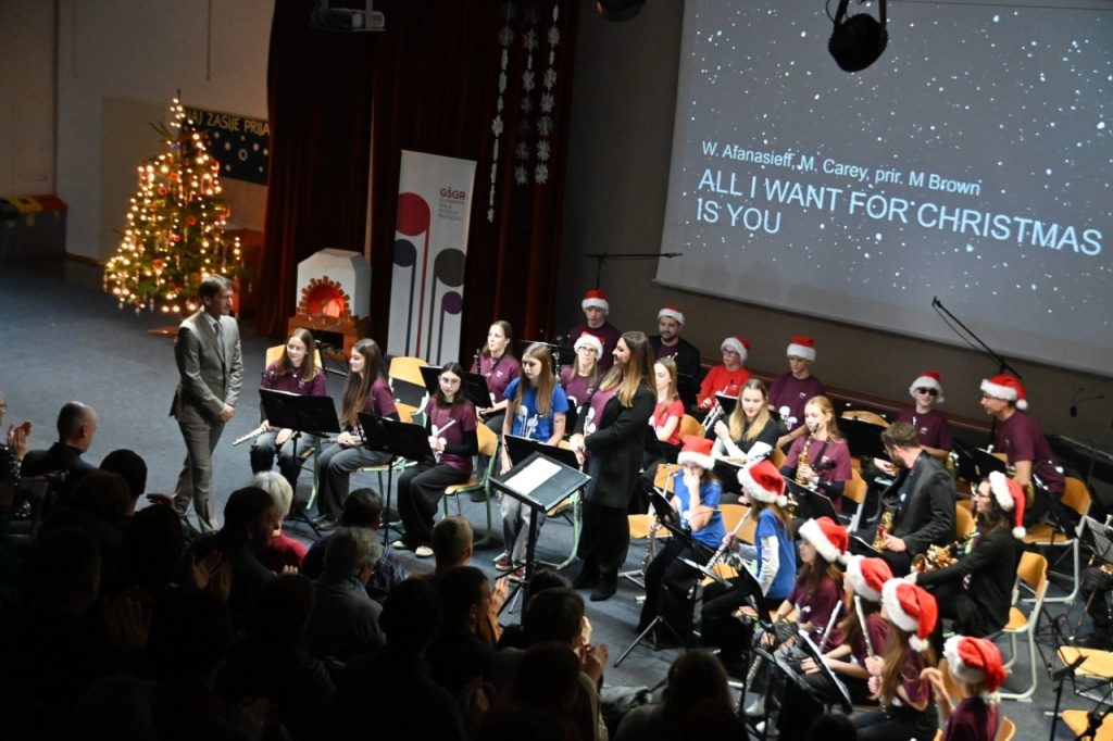 Tokrat so z množico obiskovalcev bili: kitarski, godalni, pihalni orkester in pevski zbor ter plesalke baletnega oddelka GŠ GR, ki so s svojim ustvarjanjem stkali glasbeno zgodbo tega večera in jo delili z vsemi prisotnimi. „Naj vas glasba poboža, ogreje in spremlja v praznične dni, ki so pred nami. Želim vam prijeten večer,“ je zaželel Tibaut in že napovedal Kitarski orkester, Pevski zbor, in Godalni orkester, o katerih se je pred nastopom na projektorju pojavil krajši predstavitveni filmček. In že filmček ter prvi nastopi so potrdili, kakšen večer čaka publiko. O vsem pa je spregovoril tudi moderator: „Kar smo pravkar videli in slišali, ni nastalo naključno. V glasbeni pripravnici smo skupaj z otroki skozi glasbo, besede in drobne trenutke iskali tisto, kar je v prazničnem času pogosto najtišje – a hkrati najpomembnejše. Mir. Ne tisti popoln, brezhiben mir, temveč notranji mir. Mir, ki si ga vzamemo, ko za hip odložimo hitenje, pričakovanja in skrbi. Mir, ki nam dovoli, da slišimo drug drugega in tudi sami sebe. Ko je mir prisoten, se lahko resnično odpremo prazničnemu vzdušju – toplini, glasbi, bližini. Brez njega prazniki ostanejo le datum na koledarju, z njim pa postanejo doživetje. Zato je bilo to naše skupno ustvarjanje pravzaprav povabilo: da si v teh dneh dovolimo mir. In da iz njega zrastejo veselje, hvaležnost in lepota trenutkov, ki jih delimo.“