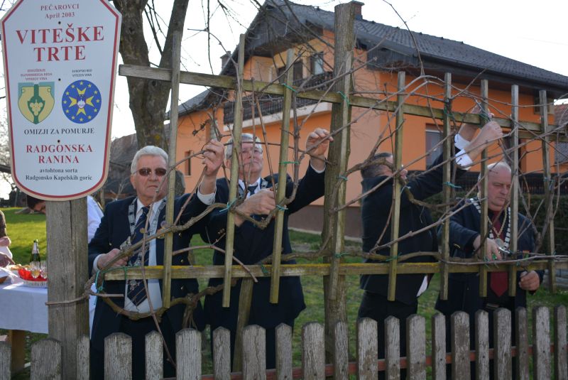 „Pred ebajstimi leti je viteško omizje Pomurja, Evropskega reda vitezov vina imelo v Pečarovcih v gostilni Zelko svoje dvanajsto letno srečanje. Ob tej priliki je bila v spomin na ta dogodek v krajevnem jedru simbolno posajena avtohtona pomurska vinska trta sorte Ranina. Odtlej se vsako leto v mesecu marcu opravlja svečana rez te trte, in letos je bila že jubilejna deseta. Dogodka se enakovredno udeležujejo tudi predstavniki med tem na novo ustanovljenega Slovenskega reda vitezov vina, omizja za Pomurje. Oba redova v Sloveniji opravljata podobno poslanstvo. Skrbita za ohranjanje pomena vinogradništva in vinarstva v Sloveniji, viteško častita vino kot žlahtni napitek in širita njegov sloves, zavzemata se za kulturno etične vrednote ter za prijateljstvo in mir“, sta dogajanje, med drugim predstavila moderator dogajanja, Andrej Šajnovič, vikar omizja Pomurja, Evropskega reda vitezov vina, ter Zlatko Borak, tajnik Omizja za Pomurje Slovenskega reda vitezov vina.