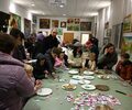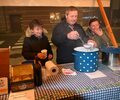 V preddverju oz. avli Kulturnega doma Cerkvenjak pa so potekale delavnice za otroke, kjer so, pod mentorstvom učiteljic, otroci ustvarjali pobarvanke in druge likovne stvaritve. Na prostoru pred Kulturnim domom pa so bile postavljene številne stojnice, kjer so lahko obiskovalci, zlasti starejši, kupili razne živilske in druge izdelke. Ponujali pa so tudi dobrote iz krušnih peči, med katerimi ni manjkalo tudi prleških gibanic, Kot se spodobi za ta zimski čas, čeprav ni bilo ravno mrzlo, so na stojnicah ponujali tudi kuhano vino ali kot temu danes pravijo kuhanček. Za kuhanček je poskrbelo tudi TD Cerkvenjak, katerega je svojo ženo Danico pripravljal predsednik društva Alojz Zorko.