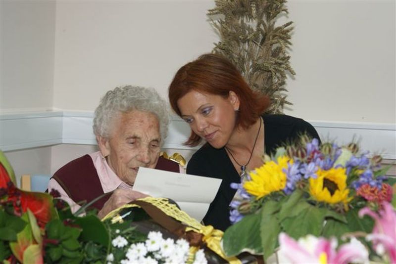 Najstarejša občanka občine Radenci Marija Menhart obeležila 100. rojstni dan; čestitko ji je poslal tudi predsednik države, dr. Danilo Türk...