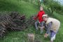 Pa pojdimo k sekanju veja ali hoste. O tem nam je 68 letna Emica povedala. »Ker imam v sobi krušno peč, v njej pa pečem kruh in druge dobrote kmečke peči, vsako leto nasekam nekaj »püšlov« ali snopov veja. Sekam ga iz veja, ko v gozdu podiramo kako drevje. Zdi se mi škoda, da bi veje metali vstran, saj na tak način ohranjamo drevesa v gozdu, ki bodo ostala za zanamce. Tukaj starem sadovnjaku sekam veje, ki ga je naklestilo lanskoletno neurje. Kot vidite, mi pridno pomaga vnukica Monika. Nekoč smo snope vezali s »pintovcem« ali s srobotom. Sedaj jih vežemo s vrvico. Naj povem, da se pozimi z vejem tudi grejem, saj z njim zakurim krušno peč, ki prijetno ogreje sobo. Ponavadi na veje naložim še kakšen štor, ali debelejše poleno in je soba prijetno topla.«